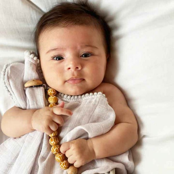 Urocza zawieszka, klips do smoczka – może służyć jako gryzak skandynawskiej marki JackOJuno z charakterystycznym wzorem cętek żyrafy. Klips ręcznie wykonany z miękkiego platynowego silikonu, przeznaczonego do kontaktu z żywnością, oraz naturalnego drewna bukowego – idealny do ulubionego smoczka Twojego malucha, pomoże go trzymać zawsze na miejscu i nie szukać w sytuacjach awaryjnych. Zawieszka ta to zdecydowanie 2w1 – może powiem służyć jako gryzak, i dać ukojenie na swędzące dziąsła.