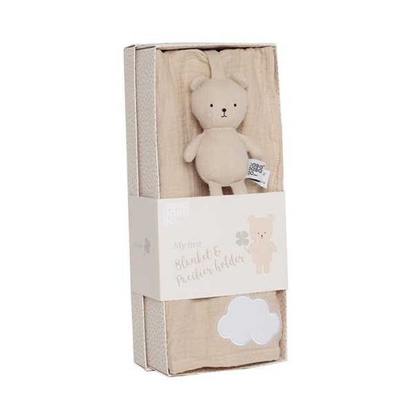 Zestaw upominkowy - kocyk i zawieszka do smoczka miś Jabadabado